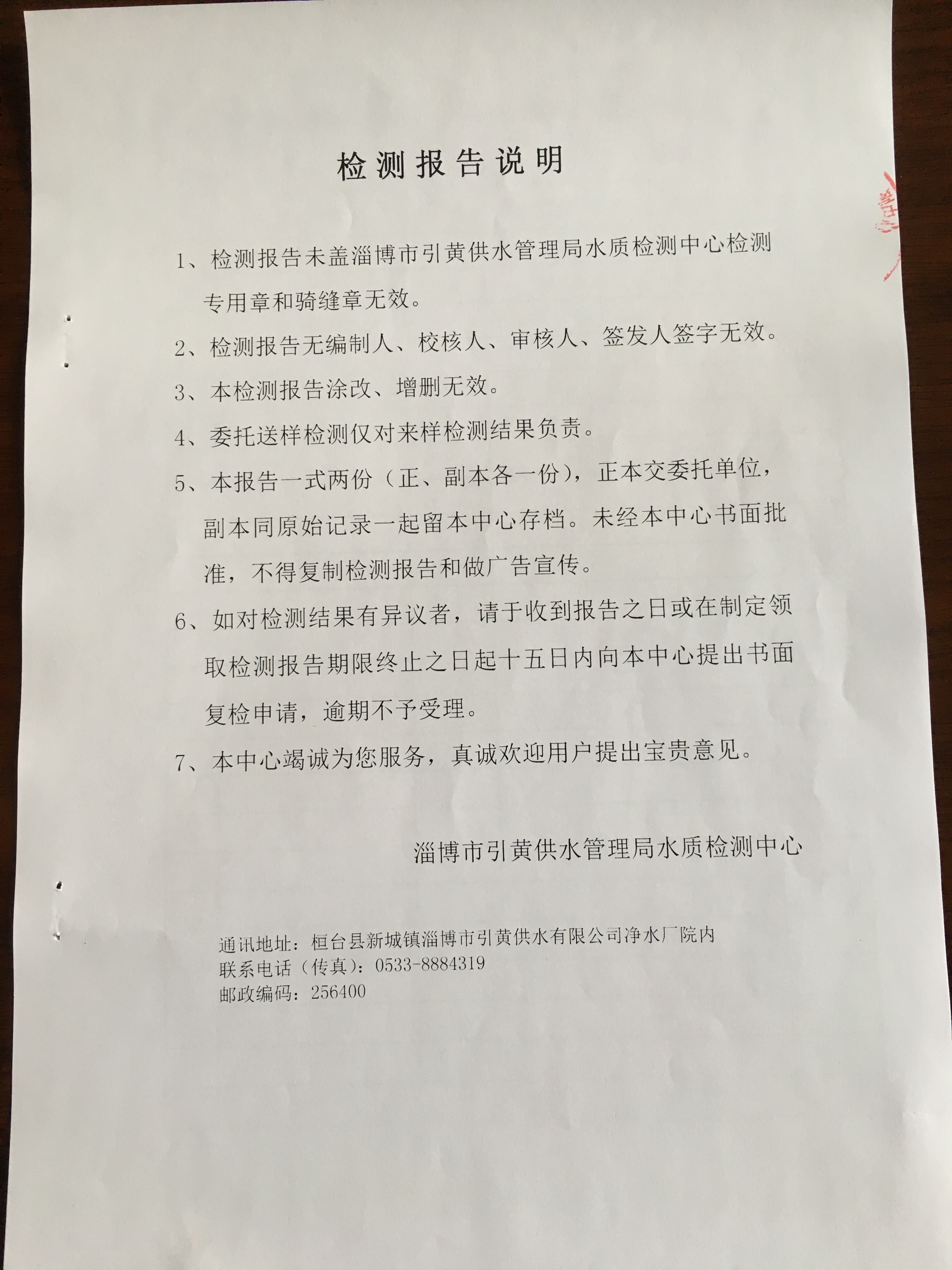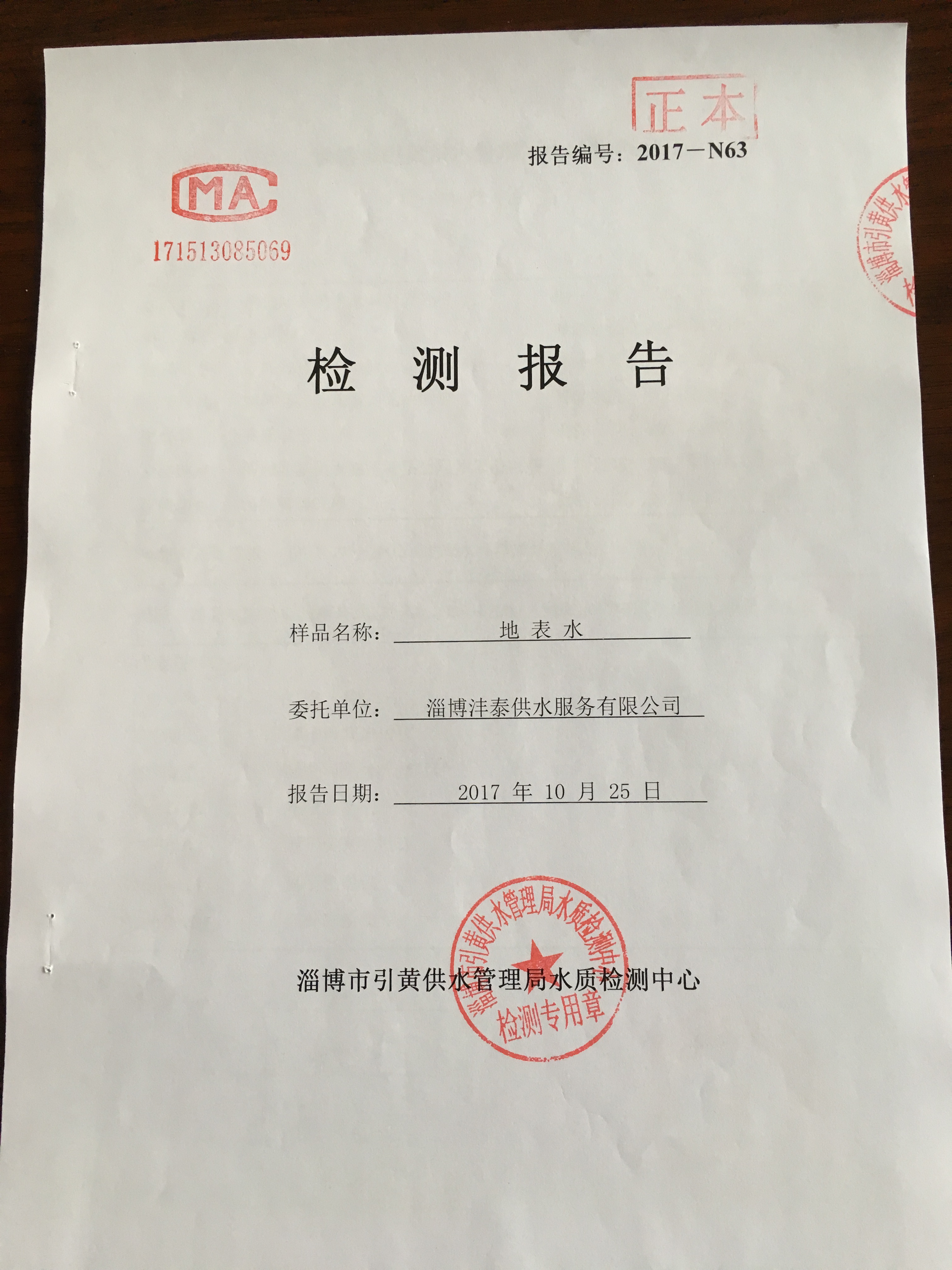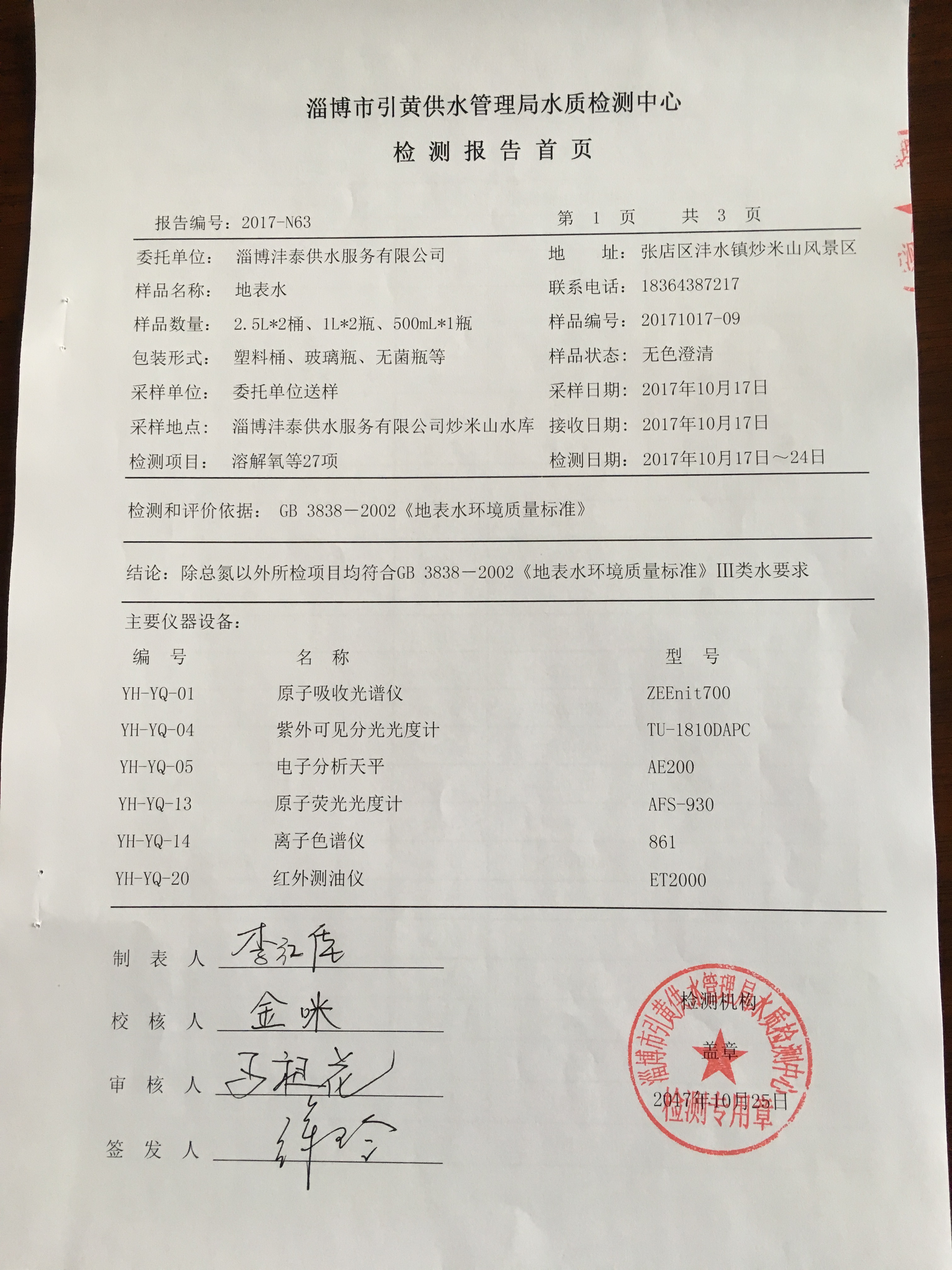 淄博灃泰供水服務有限公司地表水檢測月報表
