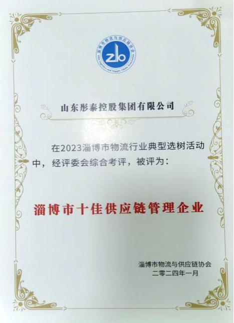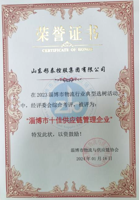 熱烈祝賀山東彤泰控股集團榮獲“淄博市十佳供應鏈管理企業”榮譽稱號