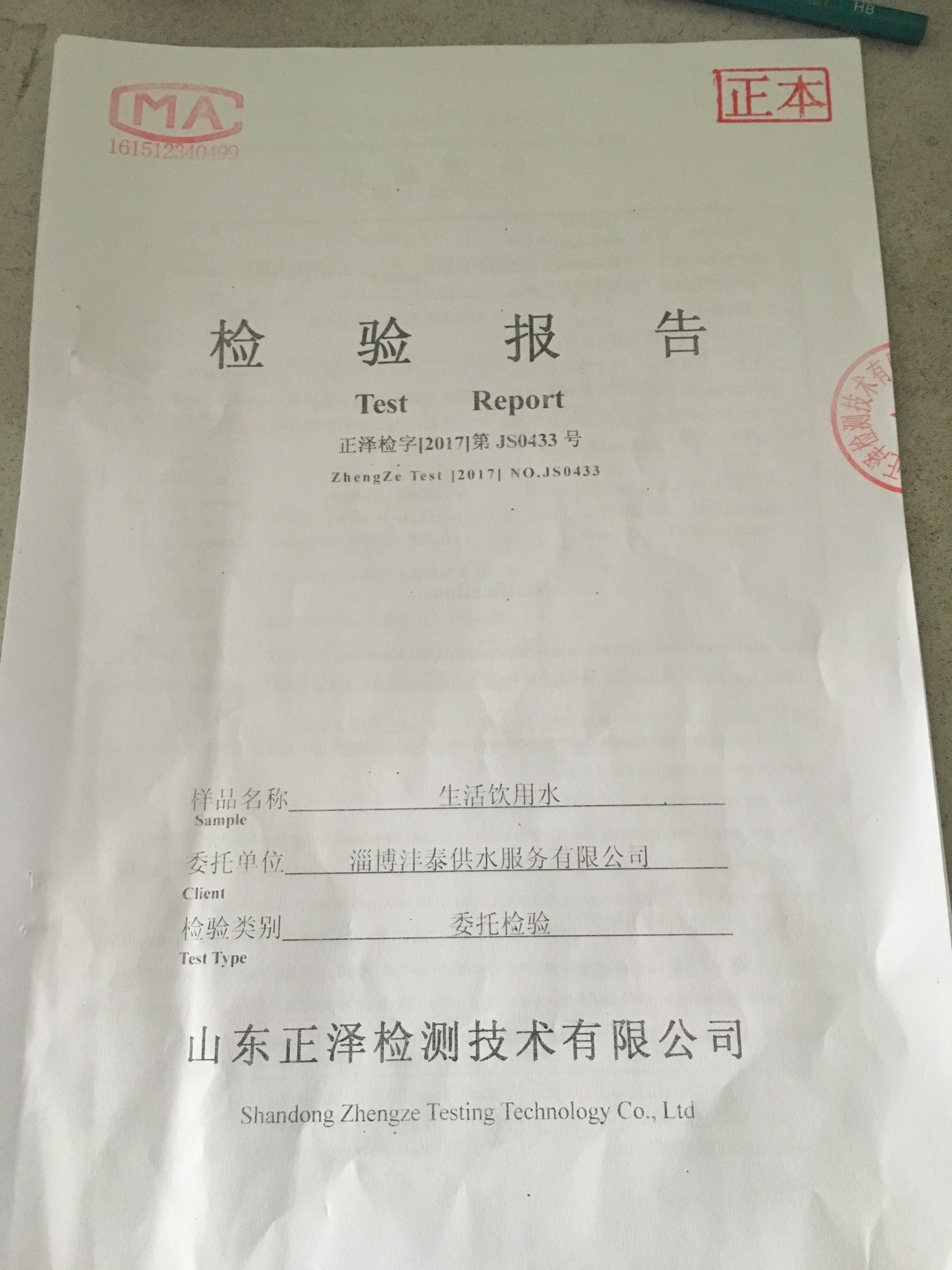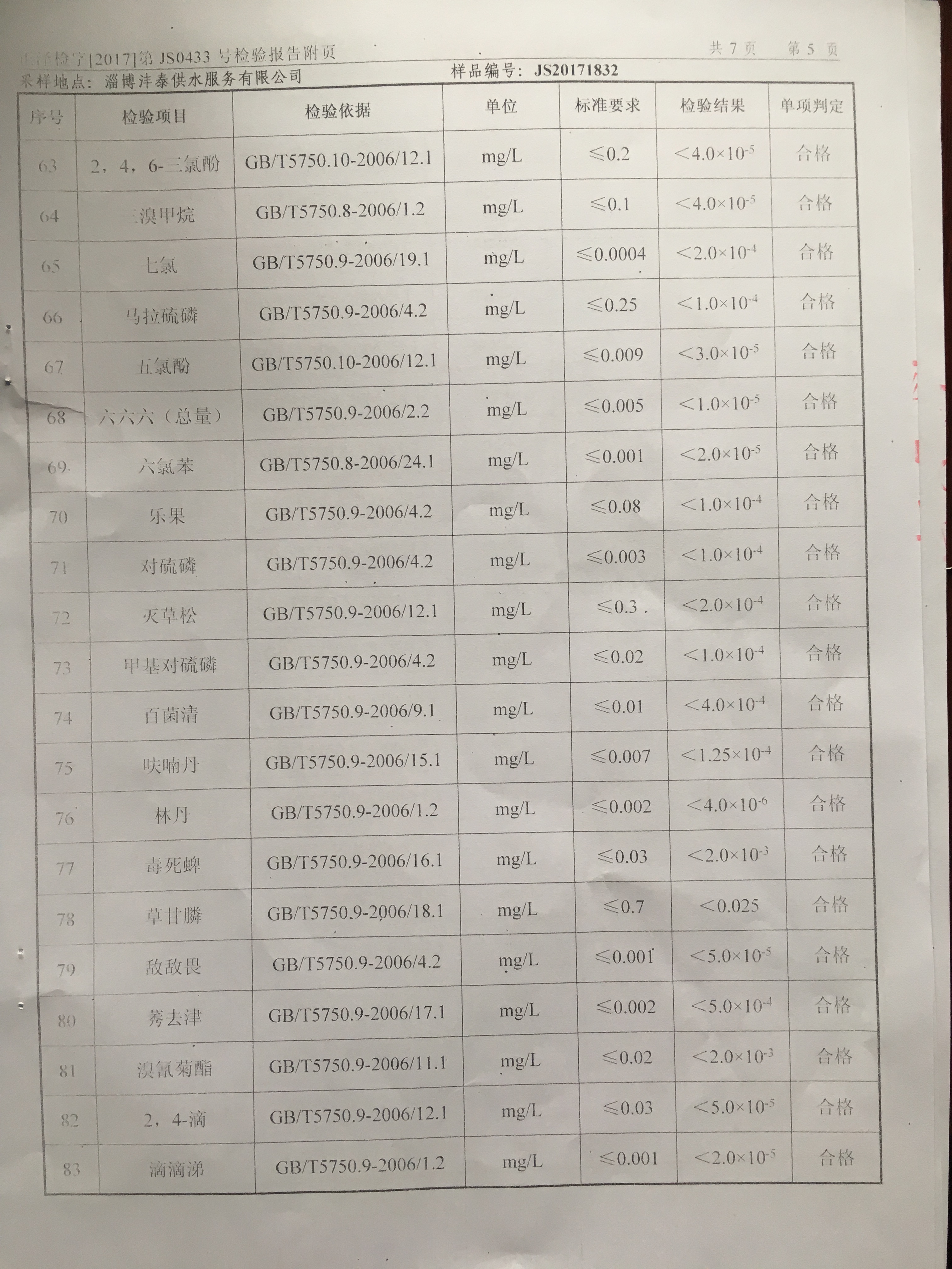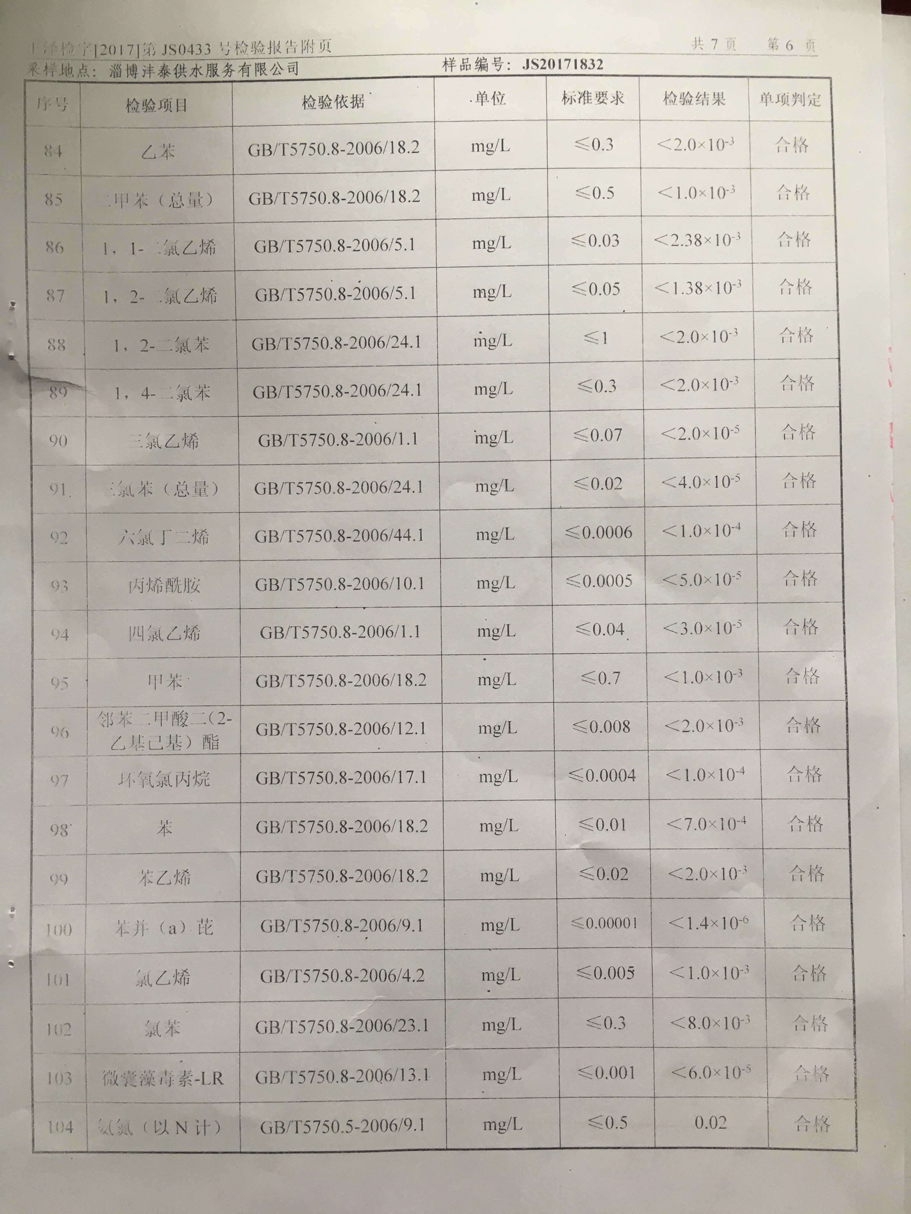 淄博灃泰供水服務有限公司出廠水檢測月報表